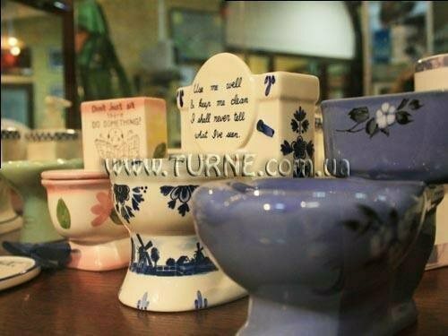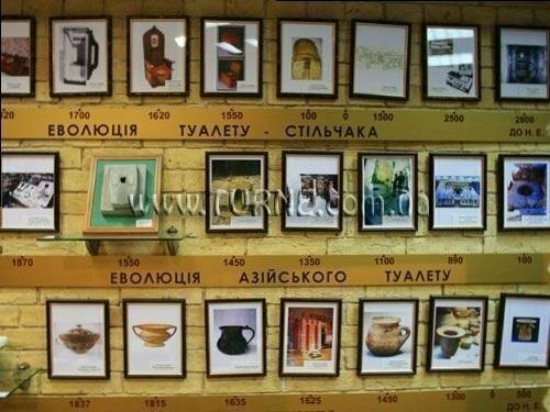 А вот у одного киевлянина любимое хобби началось с невинного увлечения статуэтками унитазов, привезенных с разных концов мира. Сегодня же коллекция разрослась до размера "Музея истории туалетов", который существует уже около 2 лет. Неслучайно помещение, где располагаются экспонаты, находится на территории старой киевской оборонной крепости, построенной еще в начале XIX столетия. Именно в тот период на территории Украины только зарождалось использование канализации, которая впоследствии стала основой современных санузлов. Теперь же на территории старинного сооружения находятся фешенебельные рестораны, ночной клуб и магазин элитной сантехники. Внутри последнего и находится комнатка музея, в которой уместилась целая история эволюции унитаза.