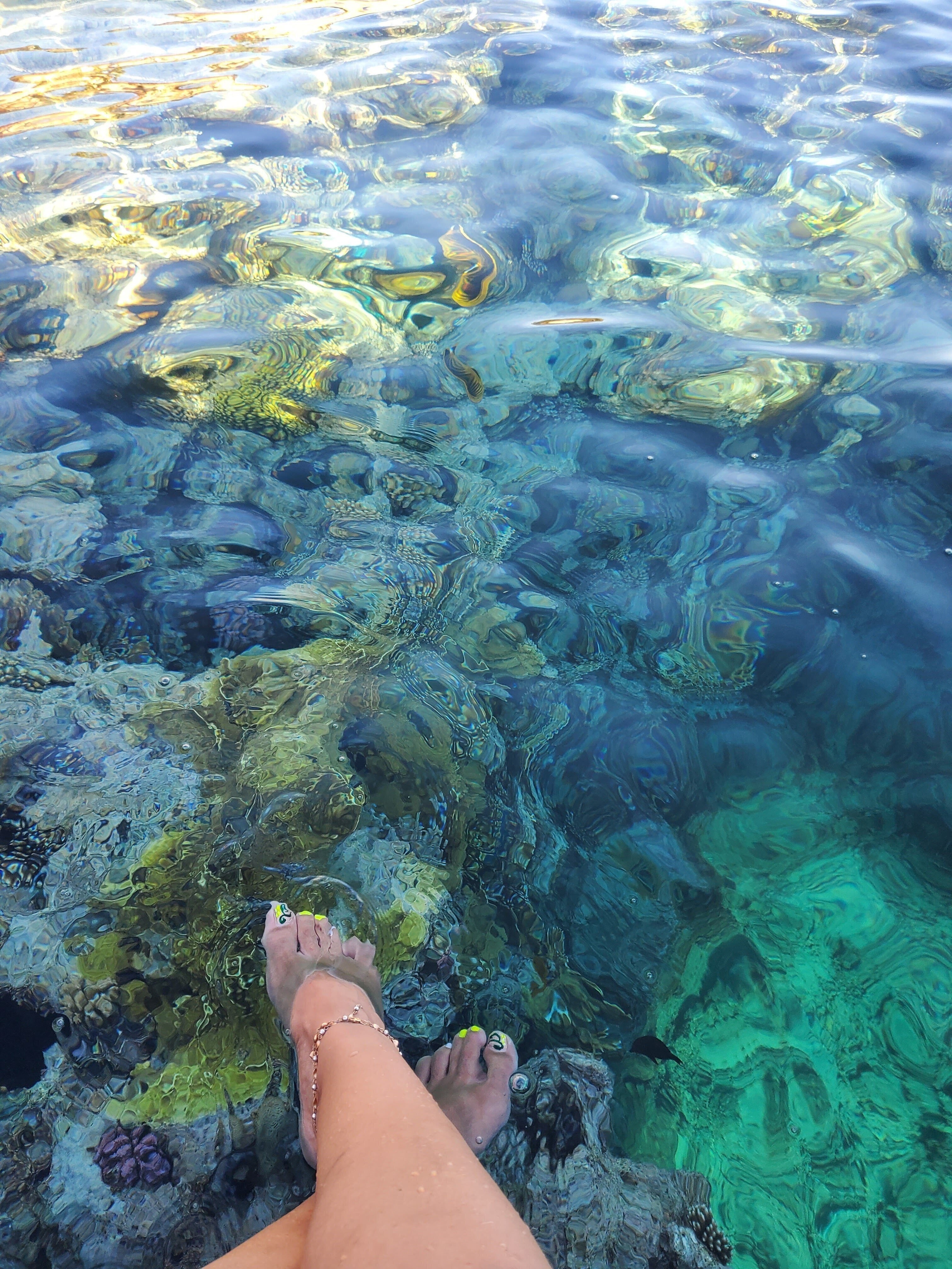 У берега расположены коралловые рифы. Вход в море осуществляется с понтона.