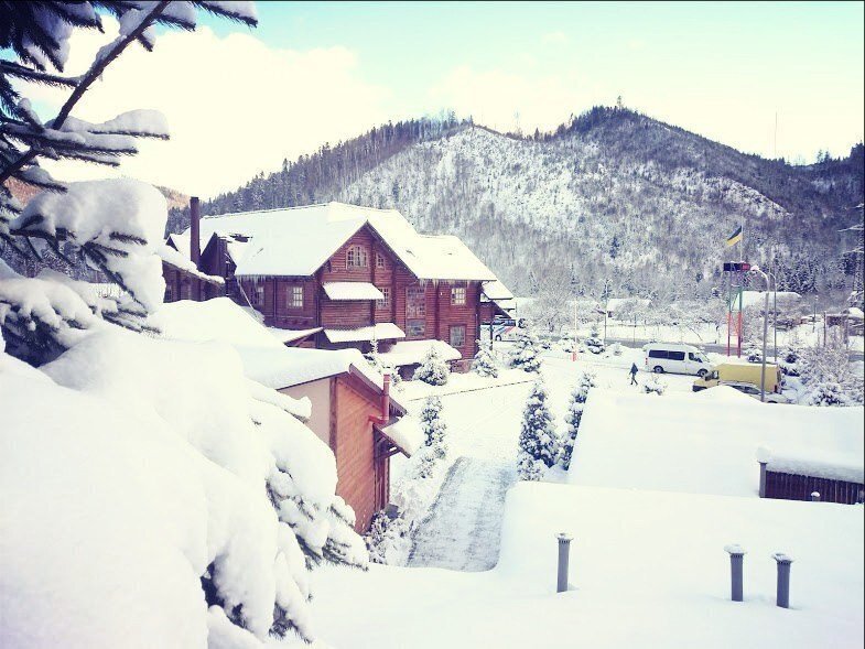 Мотель "ОКей", большой деревянный сруб расположен на трассе у поворота на Славское, среди живописных Карпатских гор и находится в 20 км от известных горнолыжных курортов Тисовец, Плай. Первые этажи из дерева внутри, последний гипсокартон. На первом этаже есть фастфуд, где можно поесть за 15–20 грн