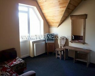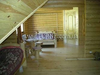 • двухуровневый мансардовый номер с удобствами (интерьер из дерева, с/у, TV, холодильник) на двоих или семью из 3-4 человек.