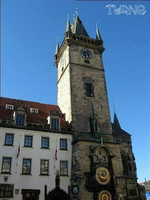 Знаменитий астрономічний годинник на Ратуші, який показує 3 часи одночасно. Також навколо циферблату є 365 знаменитих прислів'їв та символи пороків та життєвого шляху людей